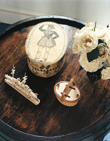 Loved, loved, loved this post yesterday! I adore Nantucket! This cottage is right up my alley. Love the colors and the use of antique nautical items. I would love to live here. The bathroom is divine. I also want a Hinckley someday.